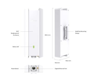 Celková propustnost: 1,8 Gb/s Počet podporovaných klientů: 1000+ Šifrování-zabezpečení: WPA-Personal/Enterprise, WPA2-Personal/Enterprise, WPA3-Personal/Enterprise Modulace: 1024 QAM, OFDMA Počet antén: 2 interní dvoupásmové všesměrové antény Zisk antény: 4 dBi (2,4 GHz), 5 dBi (5 GHz) Polarizace antén: vertikální a horizontální