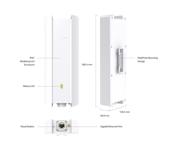 TP-Link EAP623-Outdoor HD AX1800 vnitřní/venkovní Wi-Fi 6 přístupový bod AX1800 Wi-Fi 6 (802.11ax) access point je díky konstrukci, možnostem napájení a instalace vhodný pro nejrůznější scénáře použití. Je ideální zejména do rozsáhlých venkovních oblastí s vysokou hustotou provozu. Profesionální antény s výkonným zesilovačem a horizontální i vertikální polarizací využívají technologii Wi-Fi 6, aby zesílily a prodloužily bezdrátové pokrytí v různých venkovních prostředích. Technologie OFDMA a MU-MIMO významně zlepšují použití v místech s větším počtem uživatelů, neboť dokáží souběžně spolehlivě obsloužit desítky klientů na rozlehlých, otevřených místech (vysoce efektivní bezdrátové připojení v přeplněných sítích).
