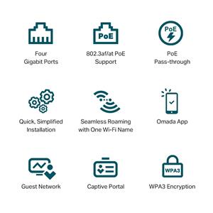 Více gigabitových portů: Připojte více zařízení díky třem gigabitovým portům pro downlink, z toho jeden s průchodem PoE.