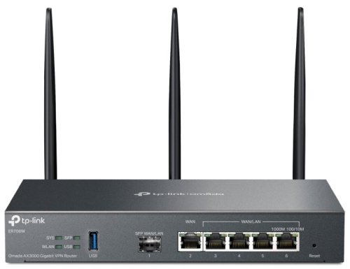 TP-Link ER706W gigabit Omada VPN dual-band Wi-Fi router disponuje 1x SFP WAN/LAN, 1x 10/100/1000Mbps WAN portem a 4x 10/100/1000 LAN/WAN porty. Je vybaven dual band Wi-Fi 6 v pásmech 2,4GHz až 574Mbps a 5GHz až 2402Mbps. Díky těmto vlastnostem je router univerzální a přizpůsobí se každé instalaci. Správa routeru je možná přes webové rozhraní nebo Omada SDN centralizovanou cloud správu. Pro bezpečné vzdálené připojení router podporuje VPN protokoly IPSec / SSL / Wireguard / PPTP / L2TP VPN. Díky technologii Omada Mesh je možné router bez problémů připojit k jednotkám EAP podporujícím mesh technologii.