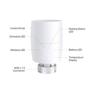 Termostatická hlavice TP-Link Kasa KE100 vám ušetří starosti i náklady při vytápění vaší chytré domácnosti či kanceláře. Umisťuje se přímo na radiátor a otevírá nebo uzavírá ventil podle pokynů uživatele. Tuto funkci je pak možné ovládat vzdáleně prostřednictvím aplikace Kasa Smart ve vašem smartphonu či tabletu, proto hlavice přináší výrazně větší komfort pro majitele nemovitosti. Díky tomu například můžete topení zapnout chvíli předtím, než se vrátíte z práce či z dovolené, aby se váš domov stihl příjemně vyhřát. Rovněž nechybí podpora virtuálních asistentů Google Home a Amazon Alexa, takže vás bude vaše domácí či kancelářské topení poslouchat na slovo. O napájení hlavice se poté starají 2 alkalické baterie velikosti LR06, které jsou součástí balení.