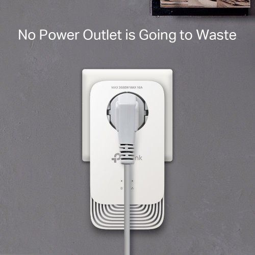 Pokročilý protokol G.hn MIMO Plug & Play Až 300 m po stávajícím elektrickém vedení 2+2 gigabitové ethernetové porty Přídavná napájecí zásuvka Neztrácejte zásuvku Režim úspory energie