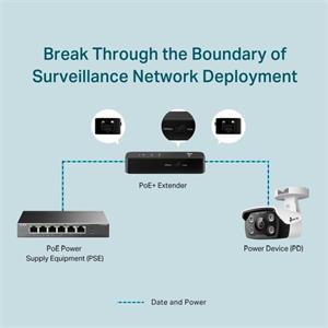 *Rozšiřuje síťové připojení PoE/PoE+ o dalších 100 m – 250 m (režim 10 Mb/s) od zařízení zdroje napájení PoE