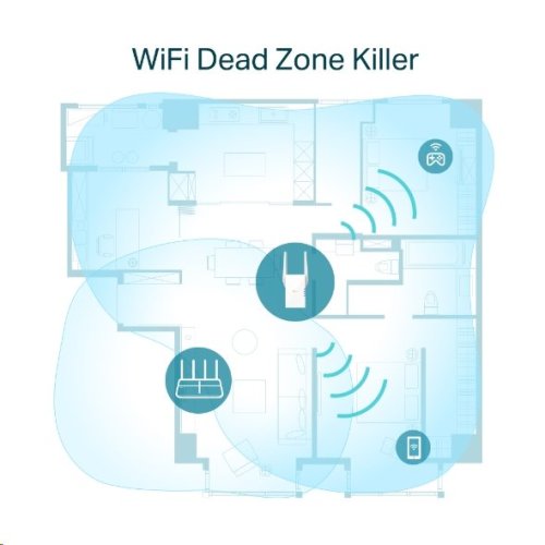 Jeden router má omezené pokrytí Wi-Fi a vždy vytváři mrtvé zóny Wi-Fi. RE605X se bezdrátově připojuje k vašemu stávajícímu routeru a zesiluje signál Wi-Fi v celém domě, což vám umožní vychutnat si plynulé zážitky v síti Wi-Fi 6 všude s velkou rychlostí, kapacitou a pokrytím.