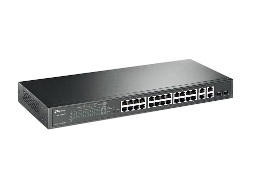 Smart switch TP-Link T1500-28PCT je vybaven 24 porty RJ45 s rychlostí 10/100Mbps, 4 porty RJ45 s rychlostí 10/100/1000Mbps a 2 kombinovanými sloty Gigabit SFP. Všechny porty RJ45 s rychlostí 100 Mb/s podporují standard 802.3at / af (PoE+) s celkovým rozpočtem PoE 192W a užitečnými funkcemi správy napájení PoE. Přepínač poskytuje vysoký výkon, podnikovou úroveň QoS, užitečné bezpečnostní strategie a bohaté funkce správy vrstvy 2.