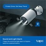 Model Tapo C420 při zaznamenání pohybu automaticky spustí hlasitou sirénu a zábleskové LED reflektory. Toto bezpečnostní opatření dokáže vyplašit případné nezvané hosty a narušitele soukromí.