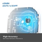 Přesné monitorování v reálném čase - Aktuální teplota v místnosti, stav vytápění a relativní vlhkost se zobrazují na LED displeji termostatu s velkou přesností (přesnost měření: ±0,54 oF, ±3 % relativní vlhkosti).