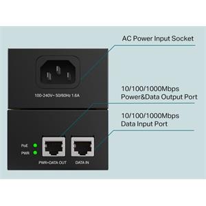 TL-POE170S je velmi robustní Gigabitový napájecí PoE injektor, který podporuje 802.3af/at/bt standardy s výkonem až 60 W, což je vhodné řešení pro napájení PTZ kamer, LED panelů, výkonější Wi-Fi AP a dalších zařízení. Injektor má LED indikaci, euro napájecí konektor na 230 V a dva RJ-45 porty z nichž první je určen na DATA a druhý na DATA + napájení.