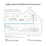 HomePlug AV2 Standard 3 gigabitové porty Konfigurace Wi-Fi jedním dotykem Plug and Play Dvoupásmová Wi-Fi AC1200 Rychlost až 867 Mb/s na 5 GHz a 300 Mb/s na 2,4 GHz