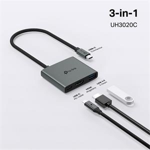 Hub 3 v 1 USB-C: UH3020C mění jeden port USB-C na 3 porty s HDMI 4K při 60 Hz, 100W Power Delivery, 1× datový port USB-A.