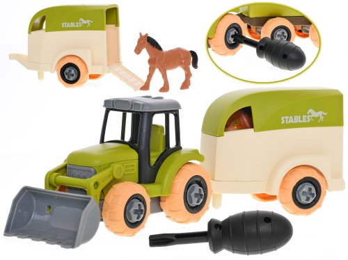 Traktor 26 cm šroubovací volný chod s přívěsem a koněm