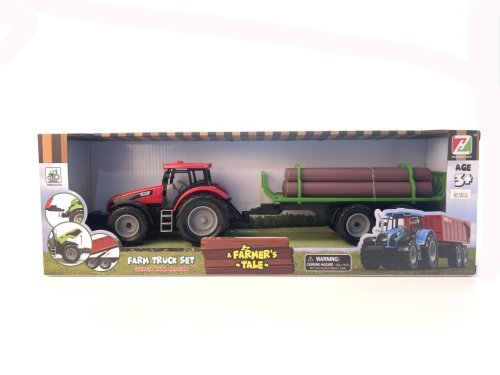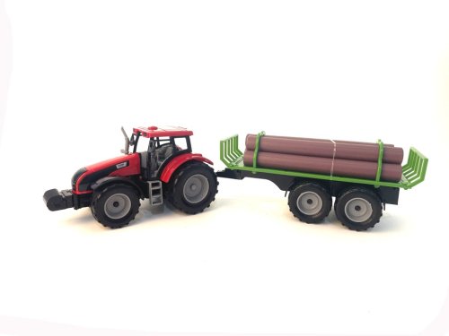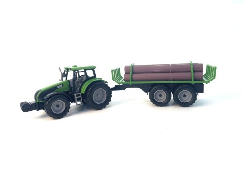 Traktor s přívěsem a kládami je skvělá hračka pro malé farmáře a stavební nadšence! Tento model má realistický design a je k dispozici ve 3 různých barvách. Přívěs je naložený kládami, což přidává na autentičnosti a zábavě při hraní. Traktor je poháněný setrvačníkem, což znamená, že stačí traktor natáhnout a on se sám rozjede. S rozměry 45 × 9 × 7,5 cm je ideální pro hraní na různých površích a podporuje kreativní a akční scénáře. Perfektní pro děti, které mají rády zemědělskou techniku a stavbu!