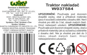 Traktor nakladač. Velikost 27 cm. Volná kola.