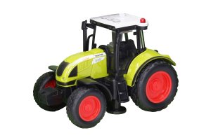 Traktor na setrvačník. Vydává světelné a zvukové efekty. Velikost 18 cm.