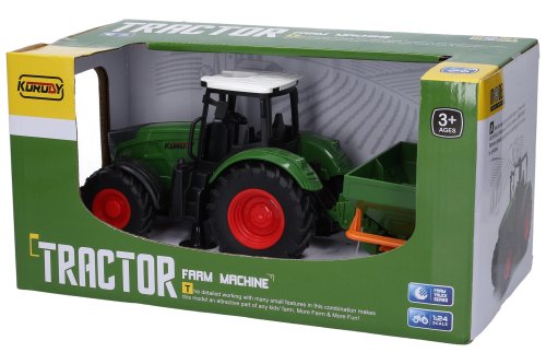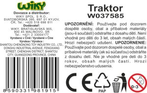 Traktor s příslušenstvím. Velikost 27 cm. Volná kola.