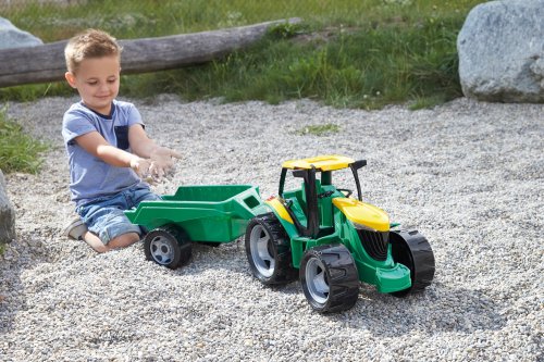 Kvalitně zpracovaný traktor s moderním designem. Byl navrhnut a vyroben tak, aby odpovídal požadovanému modernímu vzhledu, funkčnosti, odolnosti, kvalitnímu zpracování, maximální hrací hodnotě. Velikost 94x28x35cm. Vyrobeno v ČR.