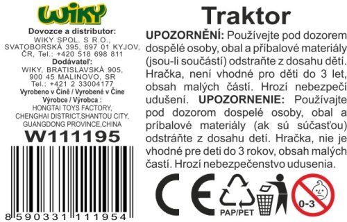 Pořádný traktor s objemnou vlečkou nesmí chybět žádnému farmáři. Délka traktoru s vlečkou je 35cm.