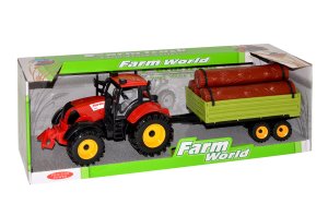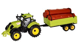 Pěkný detailní model farmářského traktoru s přívěsem a nákladem. Nezbytný doplněk každého malého farmáře, zemědělce či lesníka. Traktor to je zemědělský stroj, který zastane na poli hodně práce a děti si při hře s ním užijí spoustu zábavy.