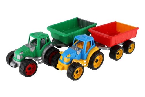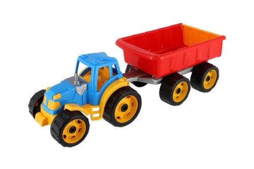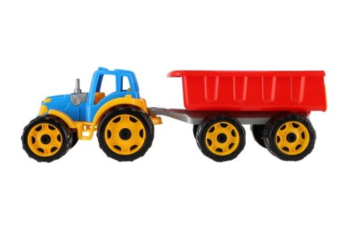 Traktory jsou bezesporu jedny z nejoblíbenějších hraček, které potěší malé i velké. Oranžový traktor se sklápěcím přívěsem má velikost 54 cm. Vhodný ke hře doma i venku. Vhodný pro děti od 3 let.