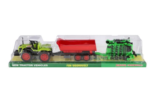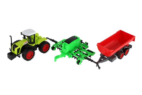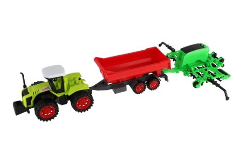 Pro každého malého zemědělce je nepostradatelným, všestranným pomocníkem traktor s vlekem a s bránami. Traktor je na setrvačník. Rozměry balení 10 x 12 x 59 cm. Vhodné pro děti od 3 let.