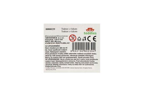Pro každého malého zemědělce je nepostradatelným, všestranným pomocníkem traktor s přívěsem. Traktor je na setrvačník a je velikosti 52 cm. Nekonečná práce na farmě může začít. Vlek s rotavatorem je možné odpojit. Rozměry balení 19 x 17 x 55 cm. Vhodné pro děti od 3 let.