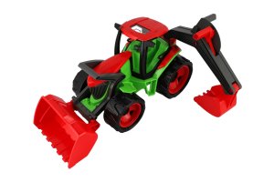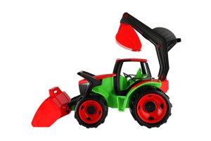 Kvalitně zpracovaný traktor s moderním designem. Byl navrhnut a vyroben tak, aby odpovídal požadovanému modernímu vzhledu, funkčnosti, odolnosti, kvalitnímu zpracování, maximální hrací hodnotě. Velikost 63x42x28 cm. Vyrobeno v ČR.