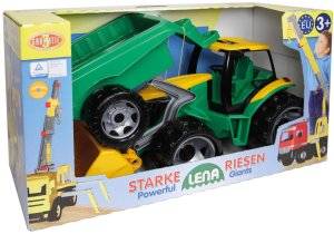 Kvalitně zpracovaný traktor s moderním designem. Byl navrhnut a vyroben tak, aby odpovídal požadovanému modernímu vzhledu, funkčnosti, odolnosti, kvalitnímu zpracování, maximální hrací hodnotě. Velikost 110x28x39cm. Vyrobeno v ČR.