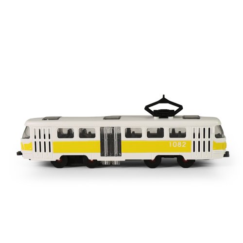 Plastová tramvaj MHD o délce cca 16 cm potěší všechny malé milovníky dopravních prostředků. Díky setrvačníkovému pohonu stačí tramvaj jemně popostrčit a sama se rozjede, což přináší spoustu zábavy při hraní. Tramva má mechanicky otevíratelné prostřední dveře, které umožňují ještě více vtáhnout děti do hry a vytvářet vlastní příběhy z městského provozu.