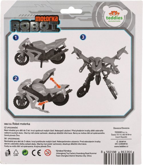 Transformer, ze kterého lze sestavit motorka nebo robot. Během pár jednoduchých kroků budeš mít z motorky robota a naopak. Rozměr motorky: 15 cm Vhodné od 3 let