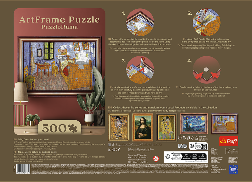 Nové vydání puzzle inspirované uměleckými mistrovskými díly! Objev zcela nový rozměr skládání puzzle díky sérii PuzzloRama – nejde jen o zábavu, ale také o stylovou dekoraci tvého interiéru! Každá sada obsahuje 500 dílků, které po složení vytvoří krásnou reprodukci jednoho ze slavných obrazů, zasazenou do elegantního rámečku. V balení najdeš: