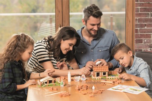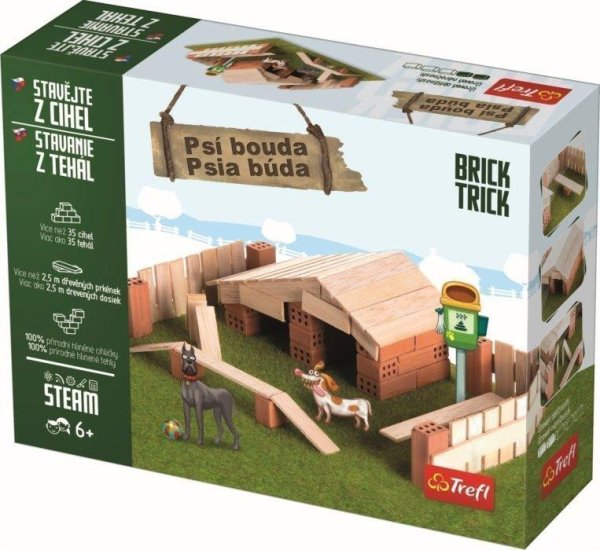 Staňte se stavitelem a vybudujte ze skutečných hliněných cihel a dřeva svoji vlastní psí boudu! Skládejte cihlu za cihlou, řežte a lepte prkénka, postupujte od základů až po dokončenou budovu a nakonec svůj výtvor ozdobte přiloženými dekoracemi. Stavte krok za krokem podle návodu nebo najděte a zrealizujte své vlastní řešení. Oživte svou dokončenou stavbu papírovými figurkami. Pokud spojíte několik sad TREFL Brick Trick, můžete vytvořit malebnou vesničku, moderní město nebo středověkou osadu. Stavebnici lze používat opakovaně (lepidlo je rozpustitelné vodou). Úroveň obtížnosti: 2,5 Balení obsahuje: - více než 35 přírodních hliněných cihliček - více než 2,5 m dřevěných prkének - základovou desku - obrázkový návod - papírové figurky - dekorační doplňky - lepidlo Stavebnice Brick Trick od výrobce TREFL zlepšují manuální dovednosti, rozvíjí představivost a podporují soustředění. Vhodné pro děti od 6 let. Vyrobeno v EU.