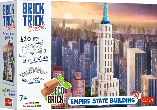 Empire State Building je newyorský mrakodrap, jeden z nejvýznamnějších symbolů tohoto města a dokonce i celé země, Spojených států Amerických. S produkty z řady Brick Trick Travel se seznámíte s některými populárními a oblíbenými památkami a hlavně si je můžete sami postavit od základů. Skládejte cihlu za cihlou, řežte a lepte prkénka, postupujte od základů až po dokončenou budovu a nakonec svůj výtvor ozdobte přiloženými dekoracemi. Stavějte krok za krokem podle návodu nebo najděte a zrealizujte své vlastní řešení. Pokud spojíte několik sad TREFL Brick Trick, můžete vytvořit malebnou vesničku, moderní město nebo středověkou osadu. Stavebnici lze používat opakovaně (lepidlo je rozpustitelné vodou). Balení obsahuje: - více než 420 přírodních hliněných cihliček - dřevěné desky - základovou desku - ozdobné prvky - samolepku - lepidlo - obrázkový návod Stavebnice Brick Trick od výrobce TREFL zlepšují zručnost, rozvíjí představivost a podporují soustředění.