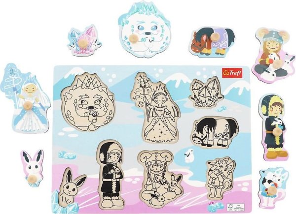 Vkládačka pro nejmenší s obrázky ze zasněženého ledového království. Dítě se podle obrysů a tvaru snaží najít správný obrázek (rozvoj představivosti a logického myšlení), a umístit jej do správného otvoru (rozvoj jemné motoriky). Vkládačka obsahuje osm dílků s úchytkami a podkladové obrázky.