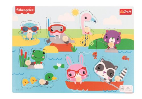 Vkládačka pro nejmenší s obrázky veselých divokých zvířátek. Dítě se podle obrysů a tvaru snaží najít správný obrázek (rozvoj představivosti a logického myšlení), a umístit jej do správného otvoru (rozvoj jemné motoriky). Vkládačka obsahuje osm dílků s úchytkami a podkladové obrázky.