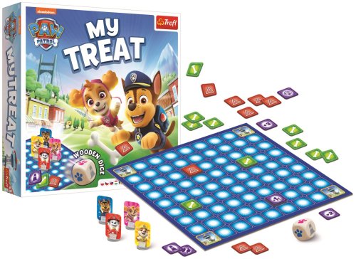 Hra s dřevěnou kostkou a motivem animovaného seriálu Tlapková patrola pro hráče již od 3 let. Pusť se do zábavného honu na pamlsky s Chasem, Sky a jejich čtyřnohými kamarády. Komu se podaří získat nejvíce pamlsků a naplní si tak hladové bříško? Při hře si dej pozor na překážky. Hru je možné hrát ve dvou variantách. Balení obsahuje: herní deska, 10 dílků s pamlsky, 9 dílků s překážkami, 6 speciálních dílků (použitých ve druhé variantě hry), 4 figurky se stojánky, kostku tlapkami, návod