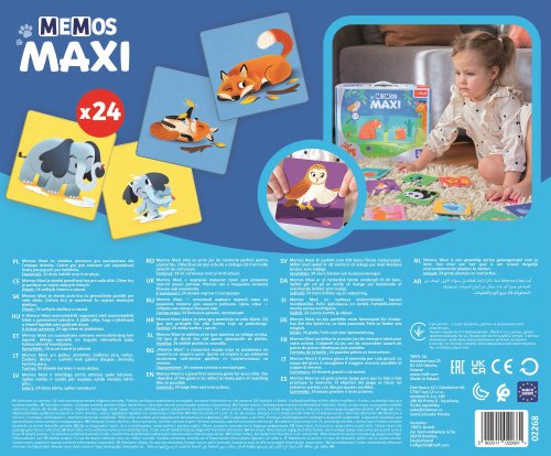 krásně ilustrované obrázky zvířátek a jejich mláďat velké kartonové kartičky o velikosti 10 cm vhodné pro velmi malé děti zábavné procvičení paměti a koncentrace 12 párů (24 kartiček) baleno v krabičce s uchem pro snadné přenášení