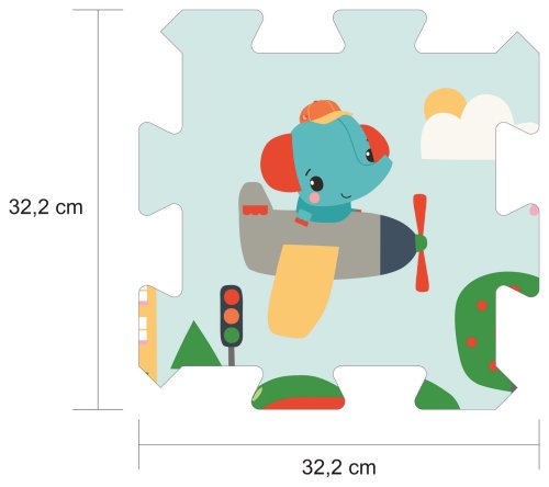 Pěnové puzzle s motivem zvířátek od Fisher Price. Pěnová podložka je vyrobena ze speciálního materiálu (nejedná se o klasickou vroubkovanou EVA pěnu, ale o materiál podobný silné karimatce nebo několikavrstvému mirelonu). Má nadstandardní tloušťku 1,5 cm a je určena zejména ke hraní. Puzzle je měkké, omyvatelné, zdravotně nezávadné, je lehce manipulovatelné a skladné. Z jednotlivých dílů lze poskládat kostka, tunel pro autíčka, nebo jej lze použít jako krásnou dekoraci na stěnu. Z osmi samostatných dílů lze vytvořit plochu přibližně 114 x 57 cm. Pěnové puzzle TREFL PUZZLOPIANKA je vhodné také jako podložka při hraní s plastelínou nebo malování barvičkami. Po použití puzzle jednoduše otřete vlhkým hadříkem. Doporučeno pro děti od 2 let.