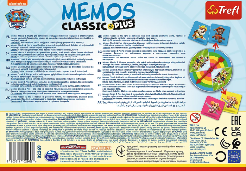 Tři paměťové hry s různými stupni obtížnosti. Začněte od nejjednodušší varianty a propracujte se k novým výzvám. 3 varianty pexesa s hrdiny, Tlapkové patroly velké kartonové kartičky, zábavné procvičení paměti a koncentrace, baleno v krabičce s uchem pro snadné přenášení Obsah balení: 36 kartiček, losovací šipka, návod
