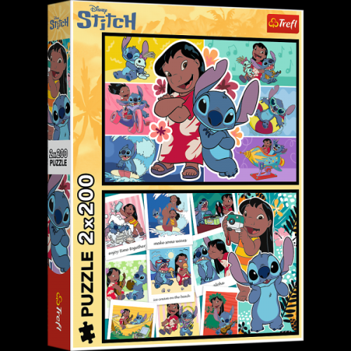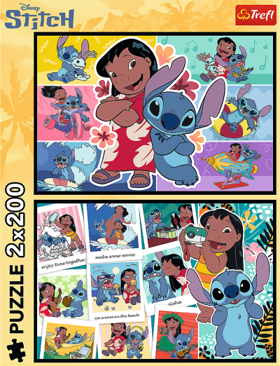 Trefl Puzzle 2x200 Šťastný život Stitche. Puzzle 2x200 vám umožní vytvořit 2 obrázky o rozměrech 410x275 mm.