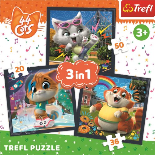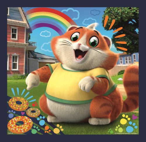 3 puzzle v 1 balení. Obsahují 20, 36 a 50 dílků. Poskládáním puzzle vznikne obrázek o rozměrech 200 x 195 mm. Vhodné pro děti od 3 let.