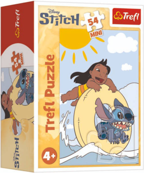 Mini-Puzzle (dílky 2,2 cm, baleno v malé krabičce) z animáku Lilo a Stitch. Rozměr složeného puzzle cca 20 x 13 cm