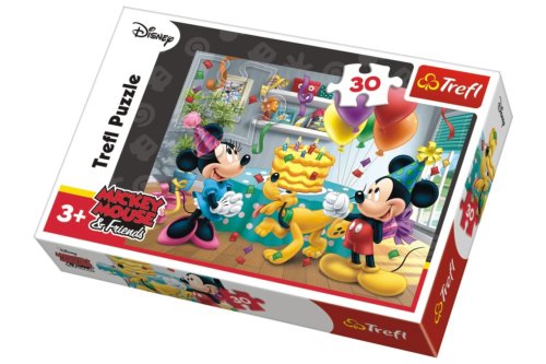 Puzzle 30 dílků, Mickey a Minnie slaví narozeniny, rozměr poskládaného obrázku 27x20 cm