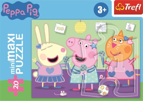 Mini maxi Puzzle (dílky 4,2 cm, baleno v malé krabičce) ze série Prasátko Peppa. Rozměr složeného puzzle cca 22 x 16 cm