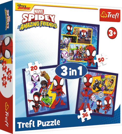 TREFL Puzzle Spidey: Pavouci a dinosauři 3v1 (20,36,50 dílků)