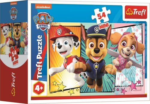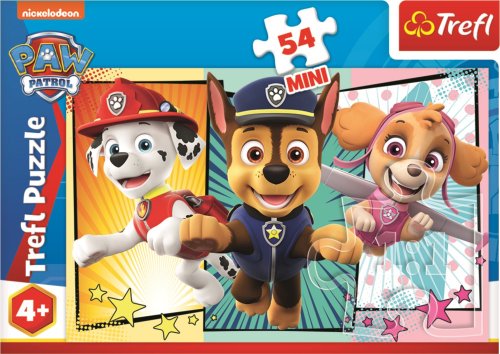 Mini-Puzzle (dílky 2,2 cm, baleno v malé krabičce) ze série Tlapková patrola. Rozměr složeného puzzle cca 20 x 13 cm