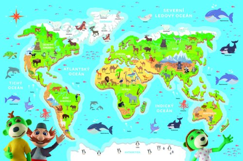 Vzdělávací puzzle pro děti s mapou světa zvířátky a Treflíky. Veškeré popisy na mapě jsou uvedeny v českém jazyce. Skládání barevných dílků rozvíjí u dětí postřeh, zručnost a trpělivost. Děti při skládání pojmenovávají jednotlivé kontinenty, oceány a zjišťují kde žijí jaká zvířátka. Doporučeno pro děti od 4 let. Rozměr složeného puzzle cca 60 x 40 cm