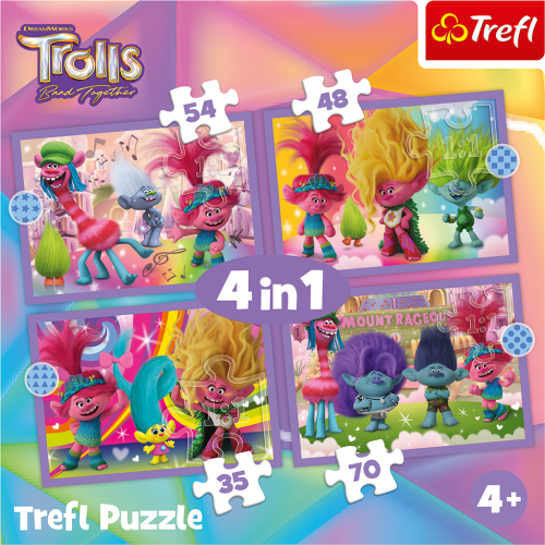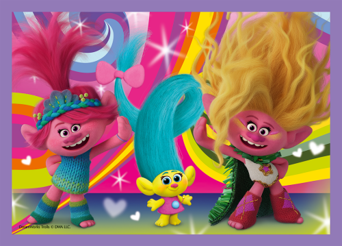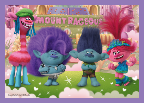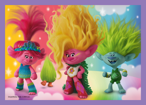 Dětské puzzle TREFL s motivem animovaného filmu Trollové. Progresivní puzzle s různou obtížností - 4 puzzle s 35 - 70 dílky. Rozměr složeného puzzle cca 28,5 x 20,5 cm