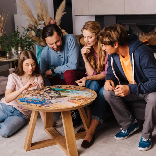 Jak na to? Jakmile poskládáte puzzle, opatrně oddělte okrajové části od složeného motivu. Prostřední části složených puzzle napojte jeden ke druhému dle vlastního přání. Nakonec připojte v potřebných místech okrajové dílky a je hotovo. Spojením čtyř patnáctistovkových puzzle máte rázem originální "šestitisícovku". Ilustrační video