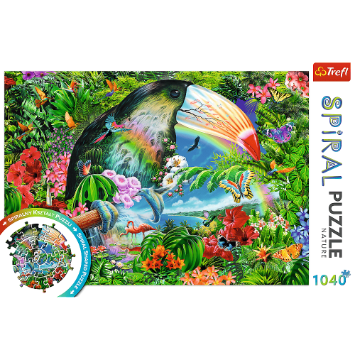 Skočte do víru zábavy! Objevte Spiral puzzle TREFL se speciálním tvarem dílků, které se skládají do spirály. Rozměr složeného puzzle cca 68,3 x 48 cm