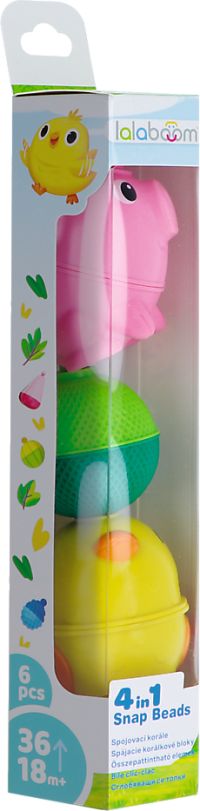 Hračka pomáhá rozvíjet všechny smysly, především zrak, sluch a hmat. Díky hře s korálkovými bloky se dítě učí ve vlastním tempu. Spojovací korále mají různé barvy, tvary a strukturu - poskytují různorodé dotykové vjemy. Lalaboom roste spolu s dítětem a podporuje jeho rozvoj na více úrovních. Korále pomáhají zdokonalovat přesnost pohybů rukou, důkladnost uchopování prsty a také otočné pohyby zápěstí. Spojovací bloky cvičí zrakově-pohybovou koordinaci, rozvíjí kreativitu a prostorovou představivost.